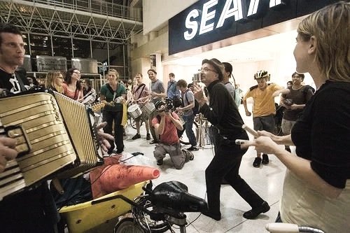 We took our show out of the clubs and into the streets, reclaiming public space. We played from parking spaces and street construction closures; we played from the rooftop of a grocery store for the first Pedestrian Sunday in Kensington Market. We put out a couple of records and did one tour of Canada